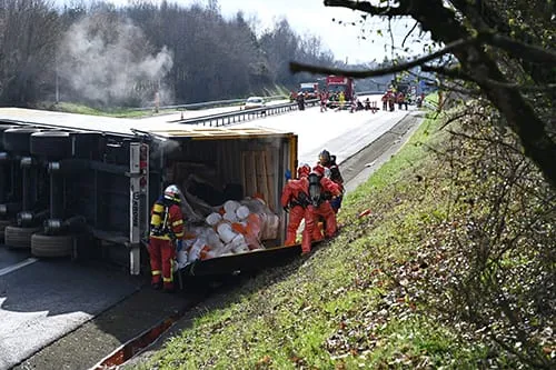 L’autoroute A20 est coupée à la suite d’un accident impliquant une voiture et un poids lourd transportant des produits chimiques.