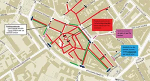 - Les voies piétonnes (rue du Clocher, rue du Consulat, rue Ferrerie et place Saint-Michel) seront interdites à la circulation à partir de 10h également (habituellement, les livraisons sont possibles jusqu’à 11h).