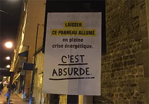 Alors que la hausse des prix de l’énergie frappe de plein fouet l’ensemble des ménages et notamment les plus précaires, les artisans et les collectivités locales, le collectif estime que « gâcher de l’énergie devient intolérable ». Des affiches pointant du doigt « l’absurdité de ce gâchis » ont été apposées sur divers supports numériques et autres panneaux publicitaires, dans le centre de Limoges.