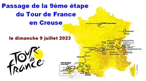 Le département de la Creuse accueillera, le dimanche 9 juillet 2023, la 9ème étape du Tour de France 2023 qui se déroulera au départ de Saint-Léonard-de-Noblat (87) pour une arrivée au sommet du Puy de Dôme (63). Le départ de la course, prévu à 13h30, suivra le départ de la caravane publicitaire, annoncé pour 11h30.