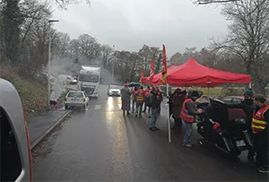 Depuis ce mercredi 8 mars 2023 à 6h, la CGT Legrand bloque la rue Marcel Deprez sur le site de La Valoine (Limoges sud).