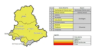 Dans un communiqué de presse de la préfecture de Haute-Vienne, on apprend que « les bassins-versants de la Gartempe et Vienne aval, de la Vienne Amont, de l’Isle Amont, de la Tardoire et du Bandiat sont placés en alerte sécheresse par arrêtés préfectoraux. Des restrictions d’usage de l’eau s’appliquent sur les communes de ces bassins ».